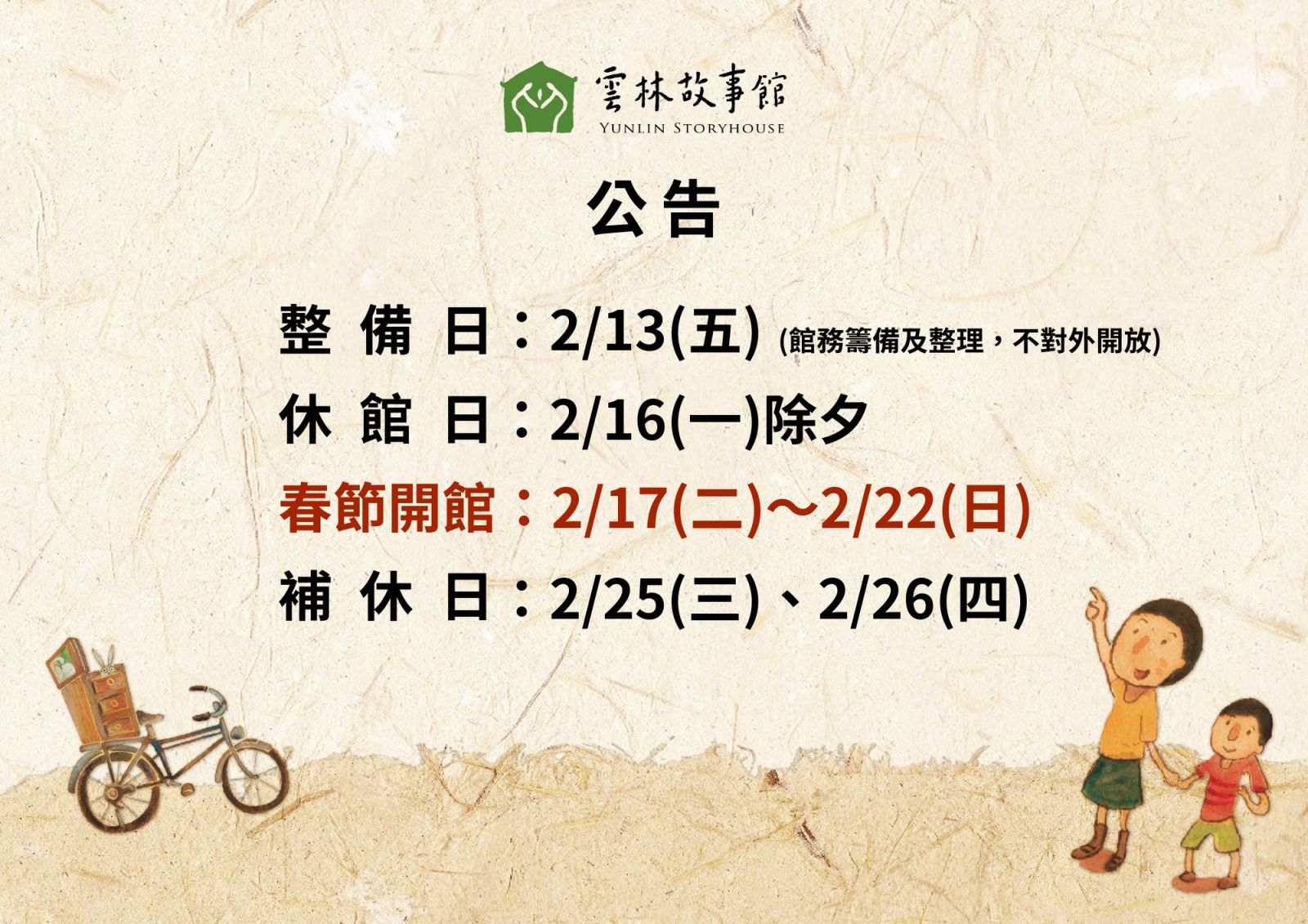 補休日:2/25(三)、2/26(四)  館舍不開放